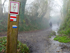 We lopen vanddaag weer een stuk van de DMT. Het is erg mistig vandaag en het blijft alsmaar net vriezen ...