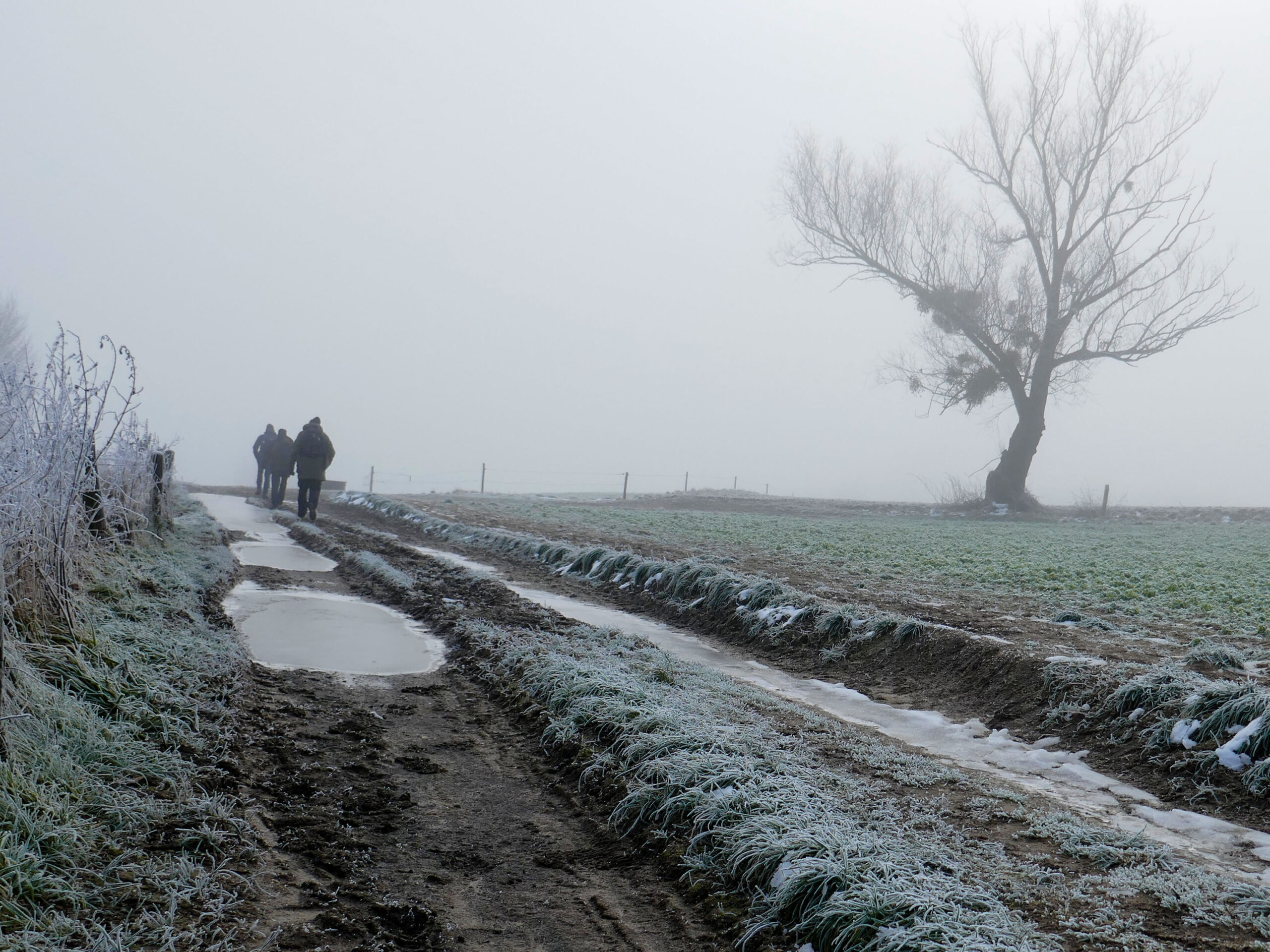 Het is erg mistig vandaag en het blijft alsmaar net vriezen ( -1 grd.) Volgens de weersverwachting zou de zon toch gaan schijnen en .... het zou helder weer gaan worden! Helaas dat mocht vandaag niet zo zijn.
