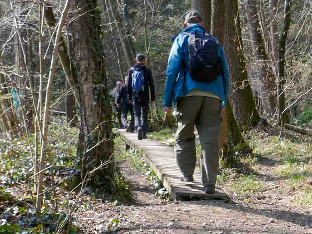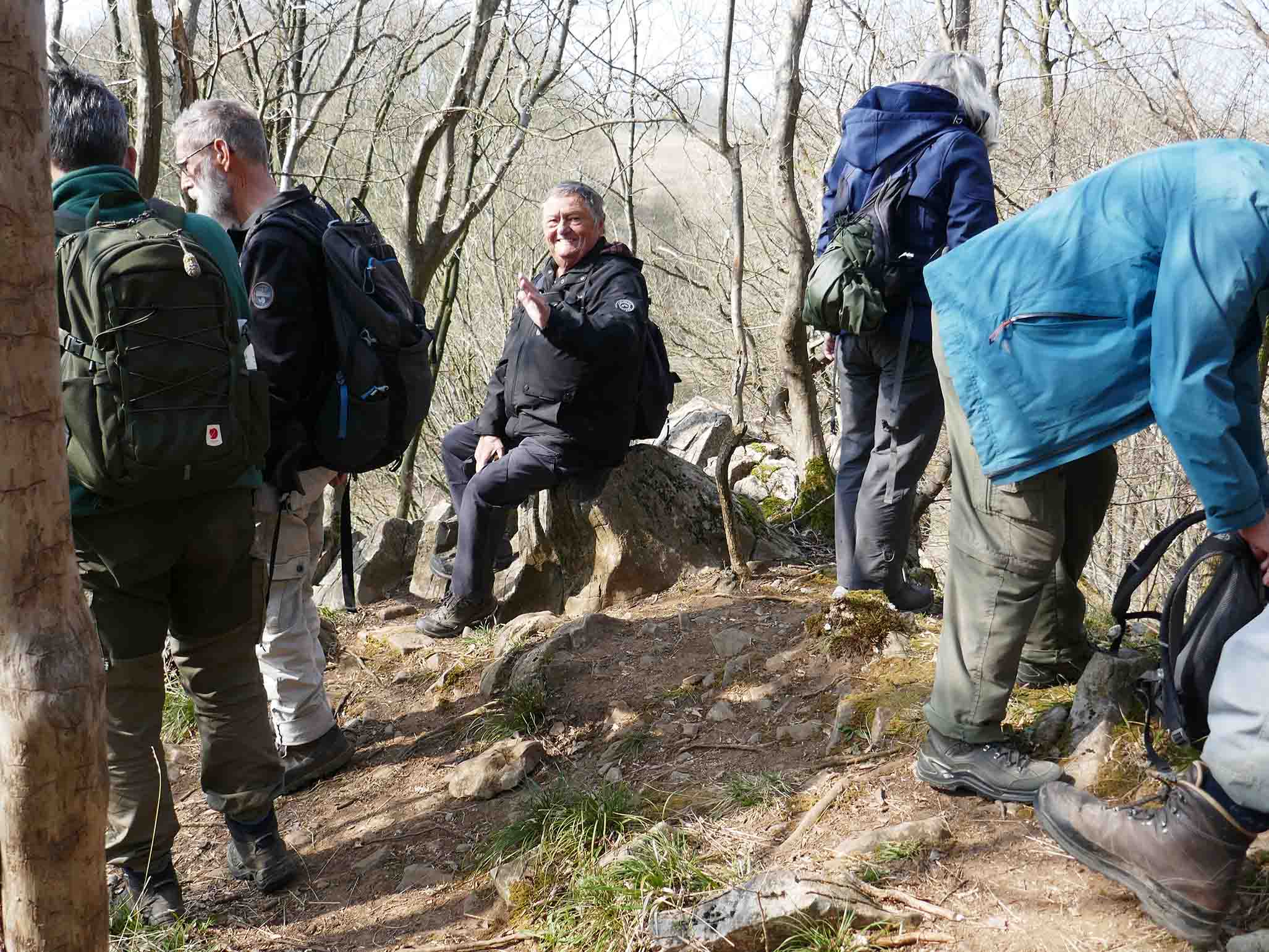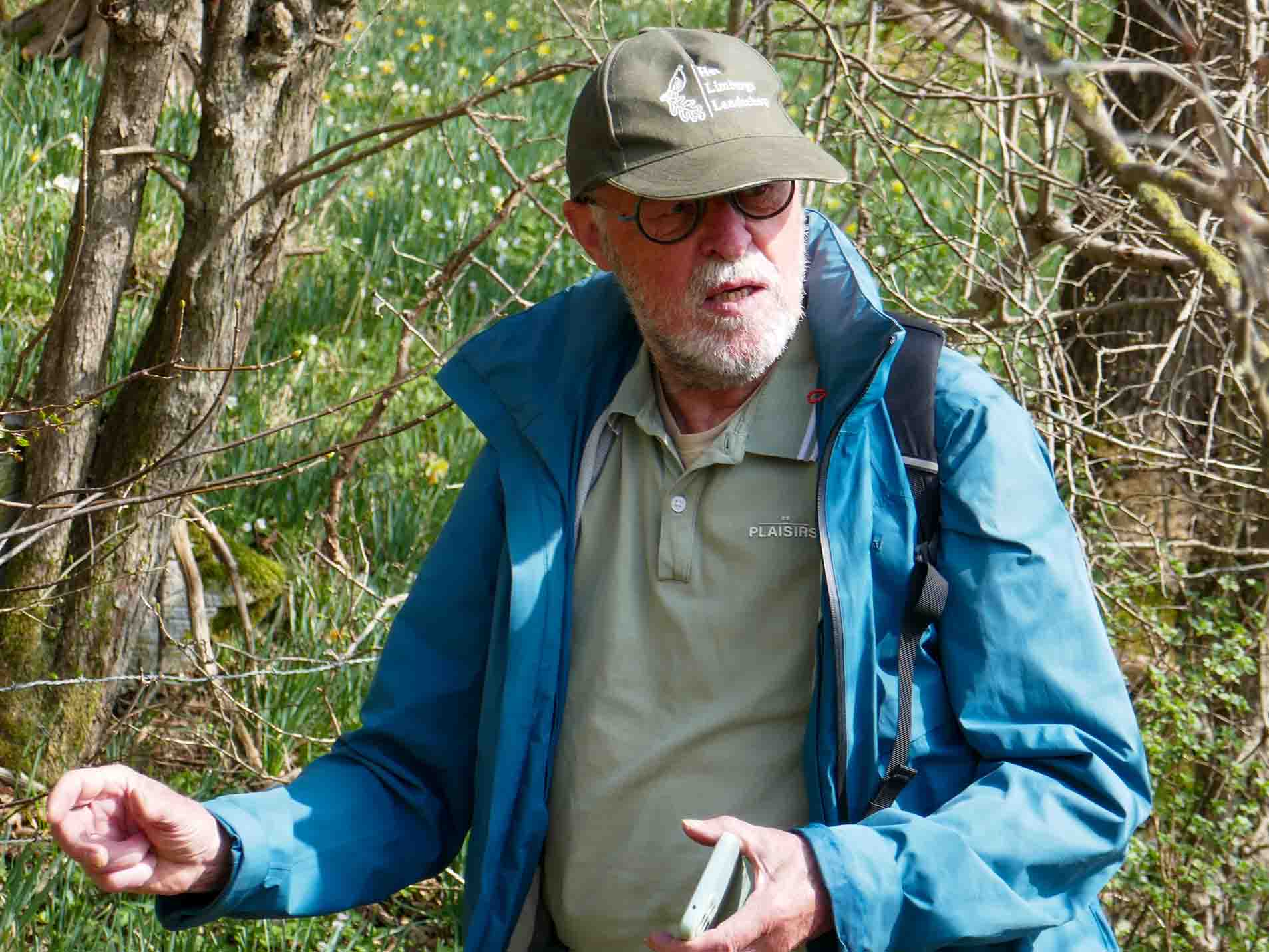 Onderweg zagen we de vele Narcissenvelden, Bosanemonen en beginnende Daslook begroeiing langs de open plekken in het bos ( Staatsforst). In de hoge hellingbossen liepen we over een oude spoortracé van de oude mijn( industriellerpfad), langs de Hohnbach met zichtbaar enkele oude mijngangen met knuppelpaadjes,. We zagen de plaatselijk kalkzandsteen (Blauwsteen). Uitgravingen van de oude zinkmijn en zinkweide waar de bijzonder zinkflora nog goed te vinden was.