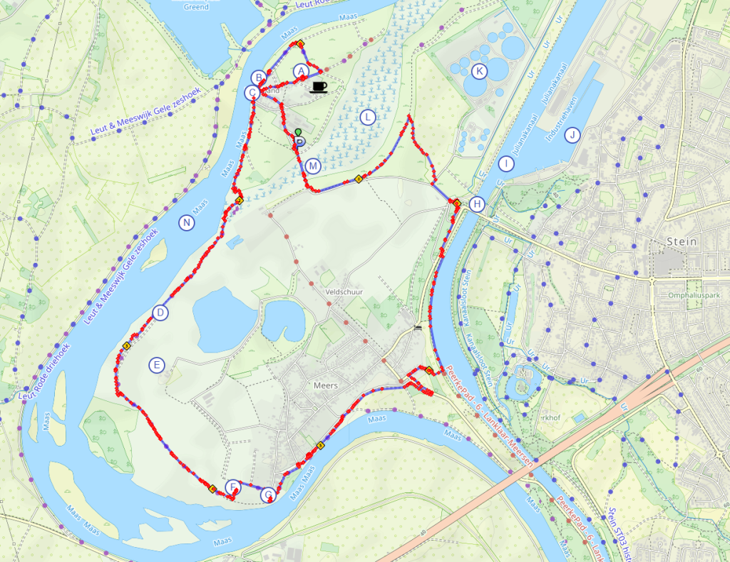 https://www.afstandmeten.nl/index.php?id=3997726 De DMT route begint naast De Maas met een steile opgang omhoog naar de Observant. We begonnen deze