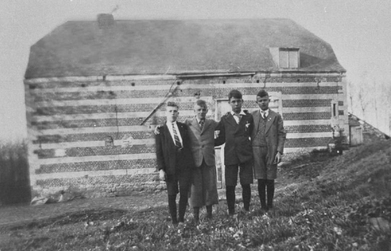 Vier jongemannen, links Frans Klinkenberg, zoon van de molenaar.